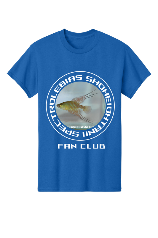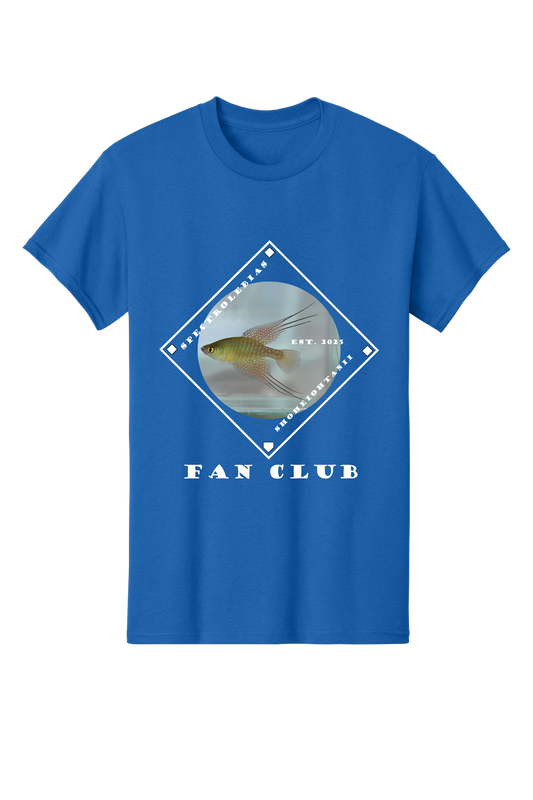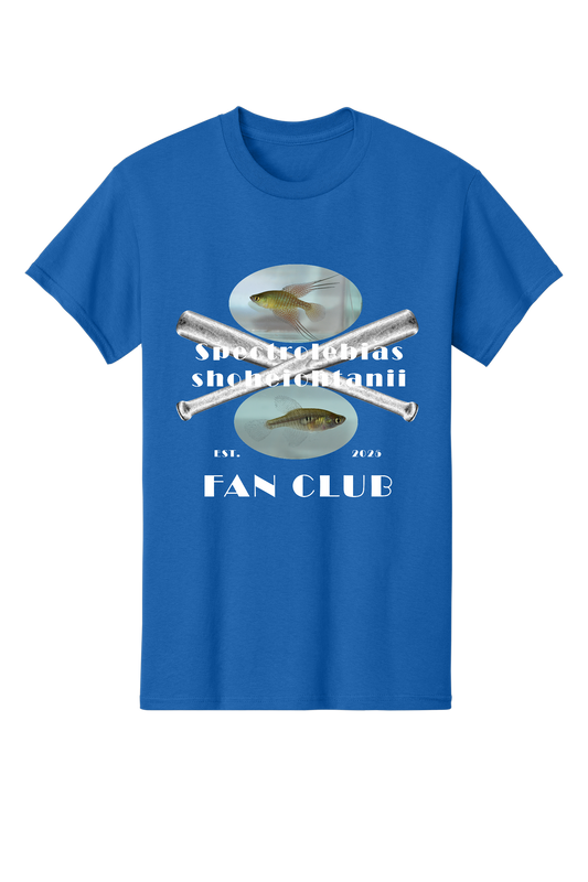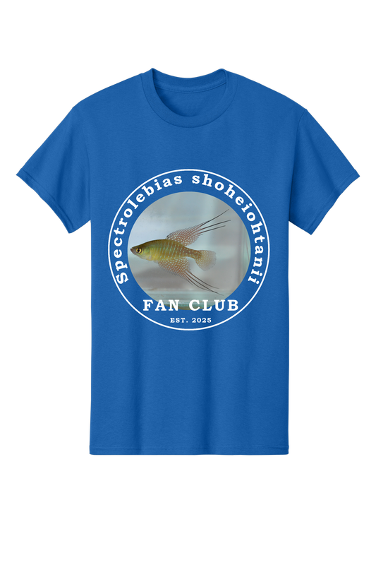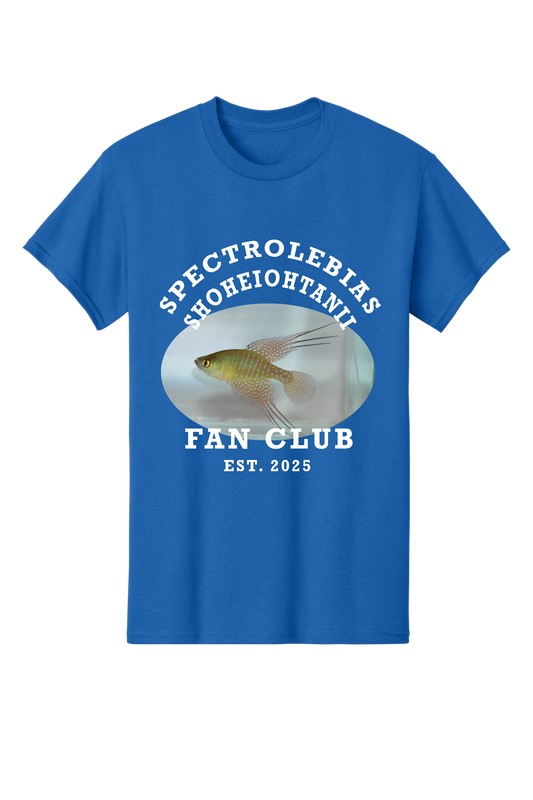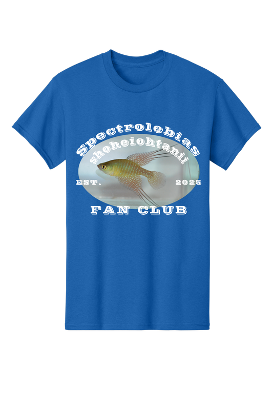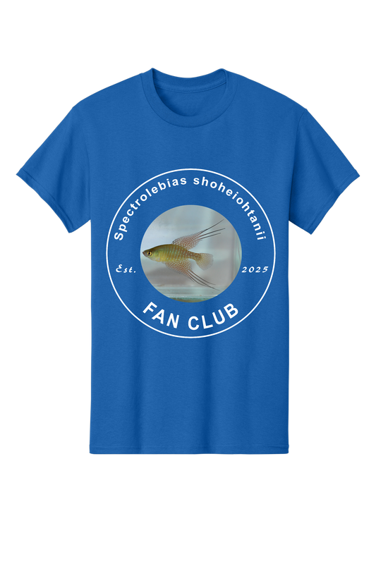 パトプリンツファンクラブの大人用Tシャツには、大谷翔平選手にちなんで名付けられた魚、スペクトロレビアス・ショヘイオタニイが様々なデザインで描かれています。