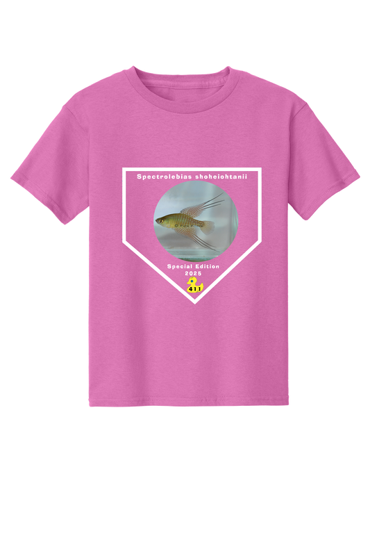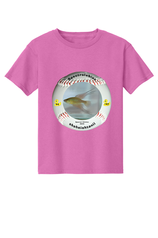パトプリンツスペシャルエディション(2024)大谷翔平選手にちなんで名付けられた魚、スペクトロレビアス・ショヘイオタニイを様々なデザインでプリントした子供用Tシャツ。