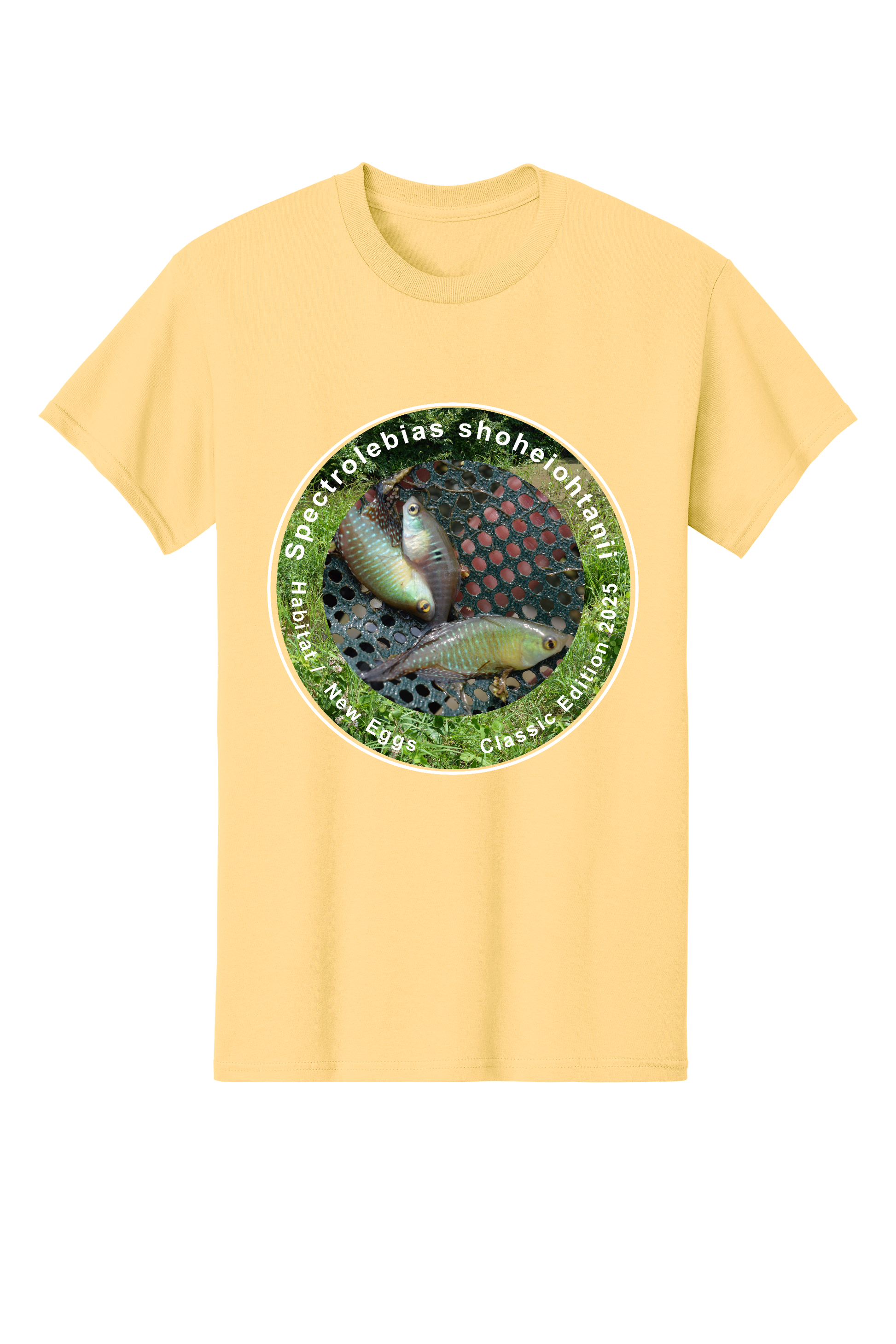 生息地のデザイン- 円は地球、卵、豊穣、そして生命の循環を表しています。この写真は、この魚の生息地、つまり住処を示しています。水たまりは一時的なもので、2~4ヶ月ほどで干上がります。これらの一年性のメダカは、この小さな水たまりで一生を過ごします。卵から孵化し、餌を食べ、成長し、翌年のために新しい卵を産み、そして死んでいきます。これらすべてが2~4ヶ月の間に起こります。