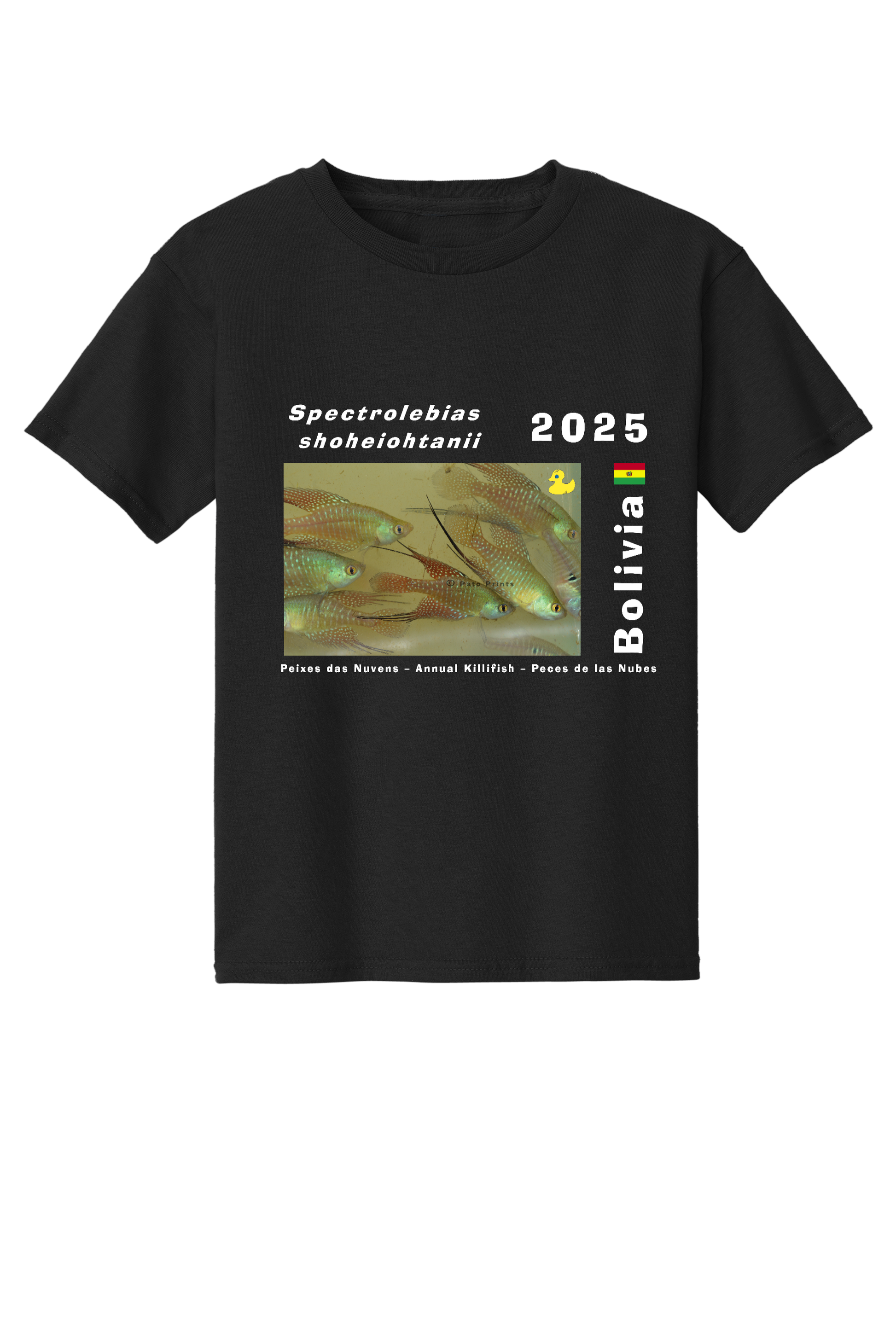 大谷翔平選手にちなんで名付けられた魚、Spectrolebias shoheiohtanii を描いた、Pato Prints オリジナル #1 子供用 T シャツ。