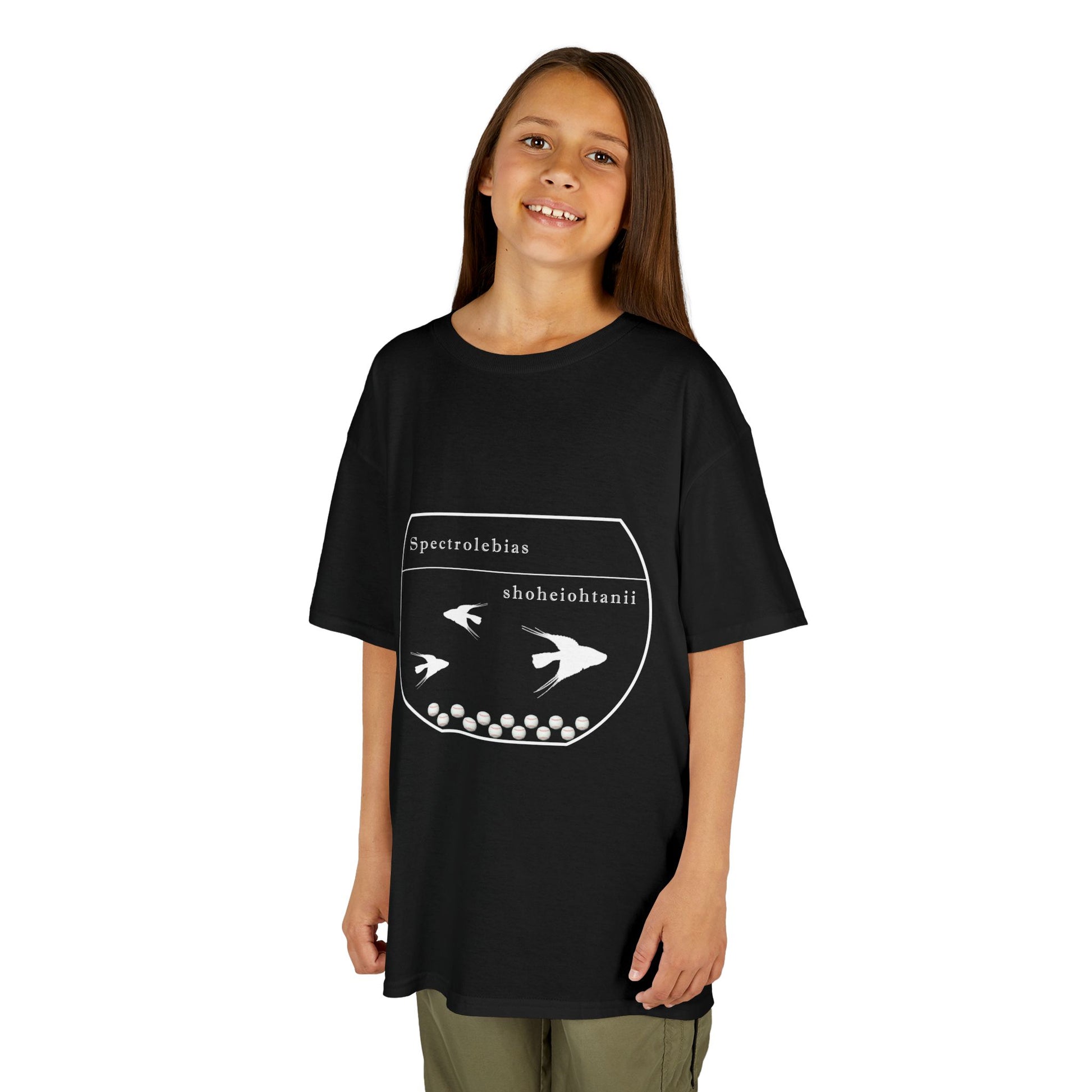 Changeup #4 - Unique designs featuring a silhouette of the fish, Spectrolebias shoheiohtanii, and incredible graphics that is trendy and classic at the same time. The kids heavy cotton tee is perfect for everyday use. The fabric is 100% cotton for solid colors. Polyester is included for heather-color variants. These fabrics are prime materials for printing. The shoulders have twill tape for improved durability. The collar is curl resistant due to ribbed knitting. There are no seams along the sides.