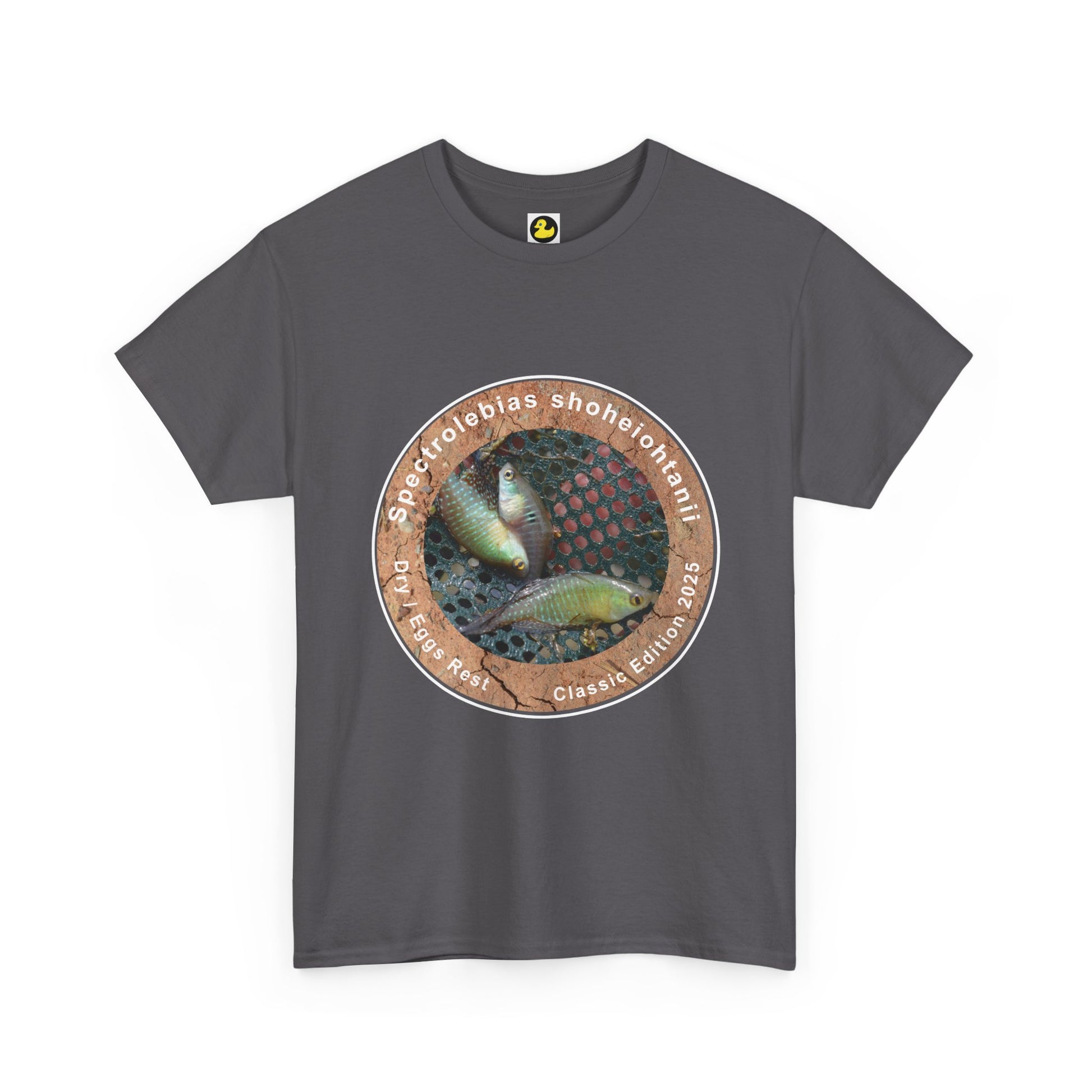 This soft, sturdy tee brings an understanding of the annual killifish life cycle. The unassuming natural fabric highlights a circular photo of some recently collected killifish surrounded in the background by a photo of the fish's dried out habitat. The tee hangs relaxed across your shoulders and feels lived in from the first wear, the ribbed collar and tubular knit keeping its shape while you hang out with friends or head to the stadium. The subtle flecks in the natural cotton and the crisp printed details make this a tee that reads as genuine, comfortable, and respect for who the fish was named after.