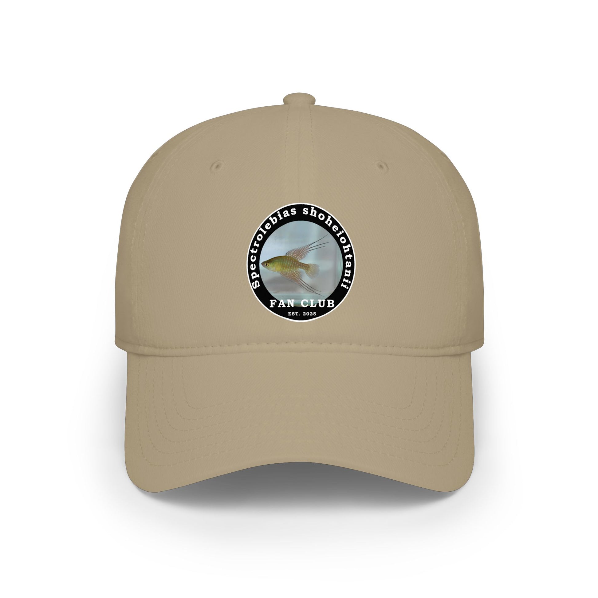 A laid-back low-profile baseball cap that feels like a familiar companion. The unstructured crown sits close to the head for a relaxed, lived-in look while the soft 100% cotton twill breathes and moves with you. Reinforced inside seams and neat stitching mean this cap stands up to frequent wear - from morning coffee runs to afternoons at the stadium. The small, circular embroidered graphic on the front, "Spectrolebias shoheiohtanii Fan Club", adds a subtle nod to your interests without shouting, and the adjustable Velcro® strap lets you dial in a secure, comfortable fit. Wear it tilted forward on bright days or pushed back for a clear view — it layers easily with jackets, hoodies, and warm-weather outfits.