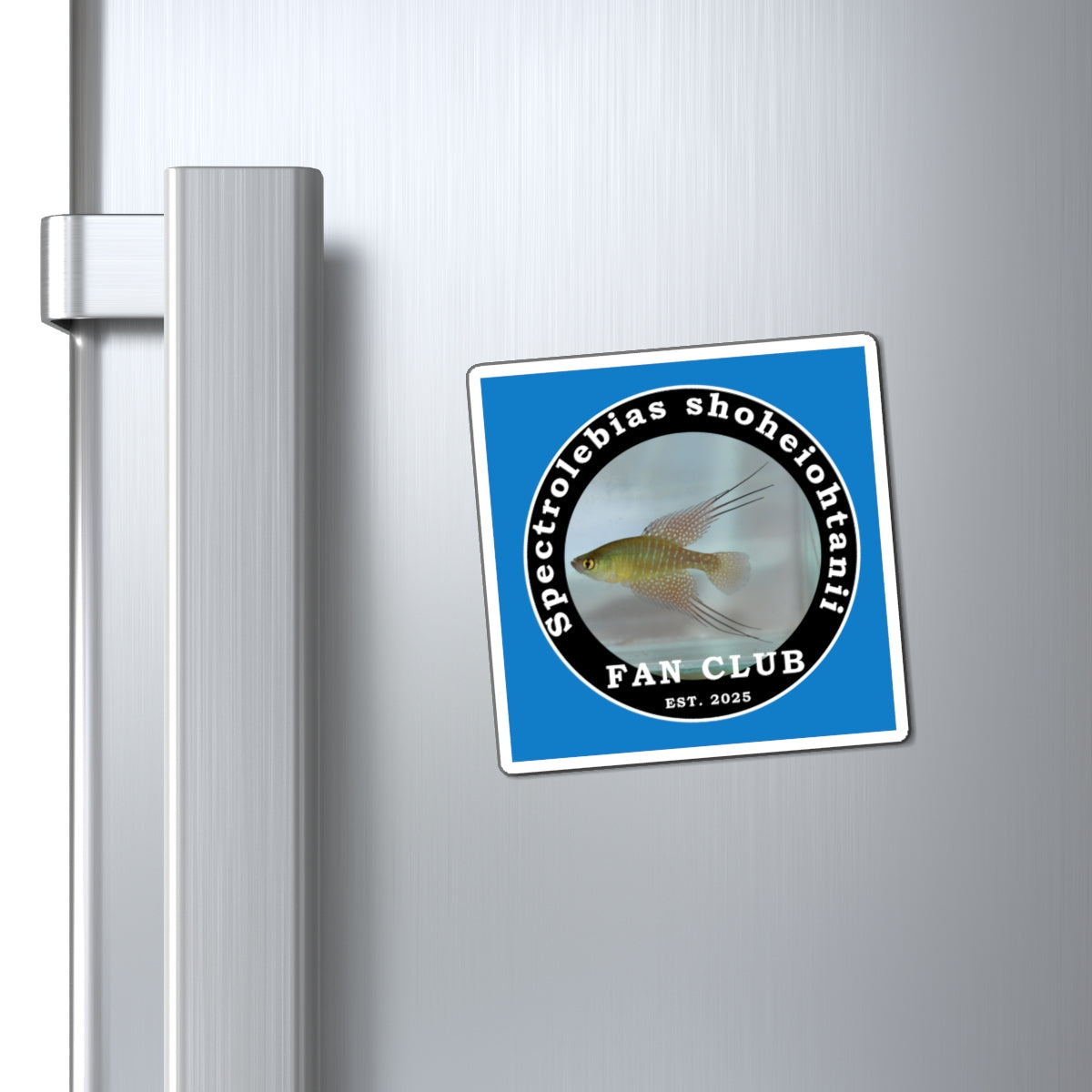 A vivid, lightweight vinyl magnet that celebrates the person this item represents. This matte-finish magnet features a close-up photo of a Spectrolebias shoheiontanii set inside a bold circular badge that reads “Fan Club". The colors stay bright thanks to high-quality printing and a laminated surface, while the thin magnetic backing lets it sit flush on fridges, metal cabinets, or any place else it sticks to. Bring a touch of fan club pride to your space and let this magnet spark conversations with fellow baseball enthusiasts.